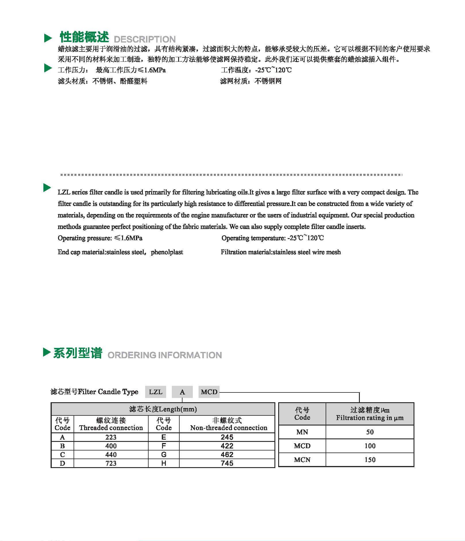 LZL系列燭型濾芯